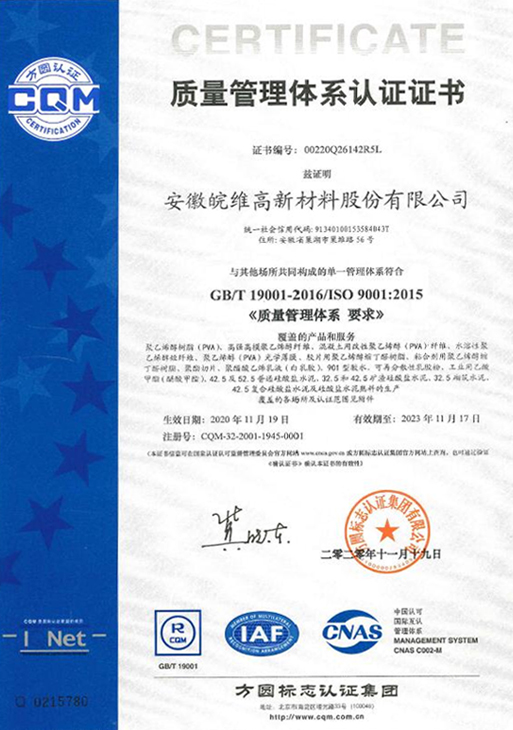 質量管理體系認證證書
